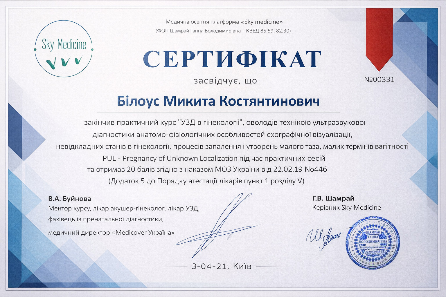 Лікар гінеколог та лікар ультразвукової діагностикиБілоус Микита Костянтинович